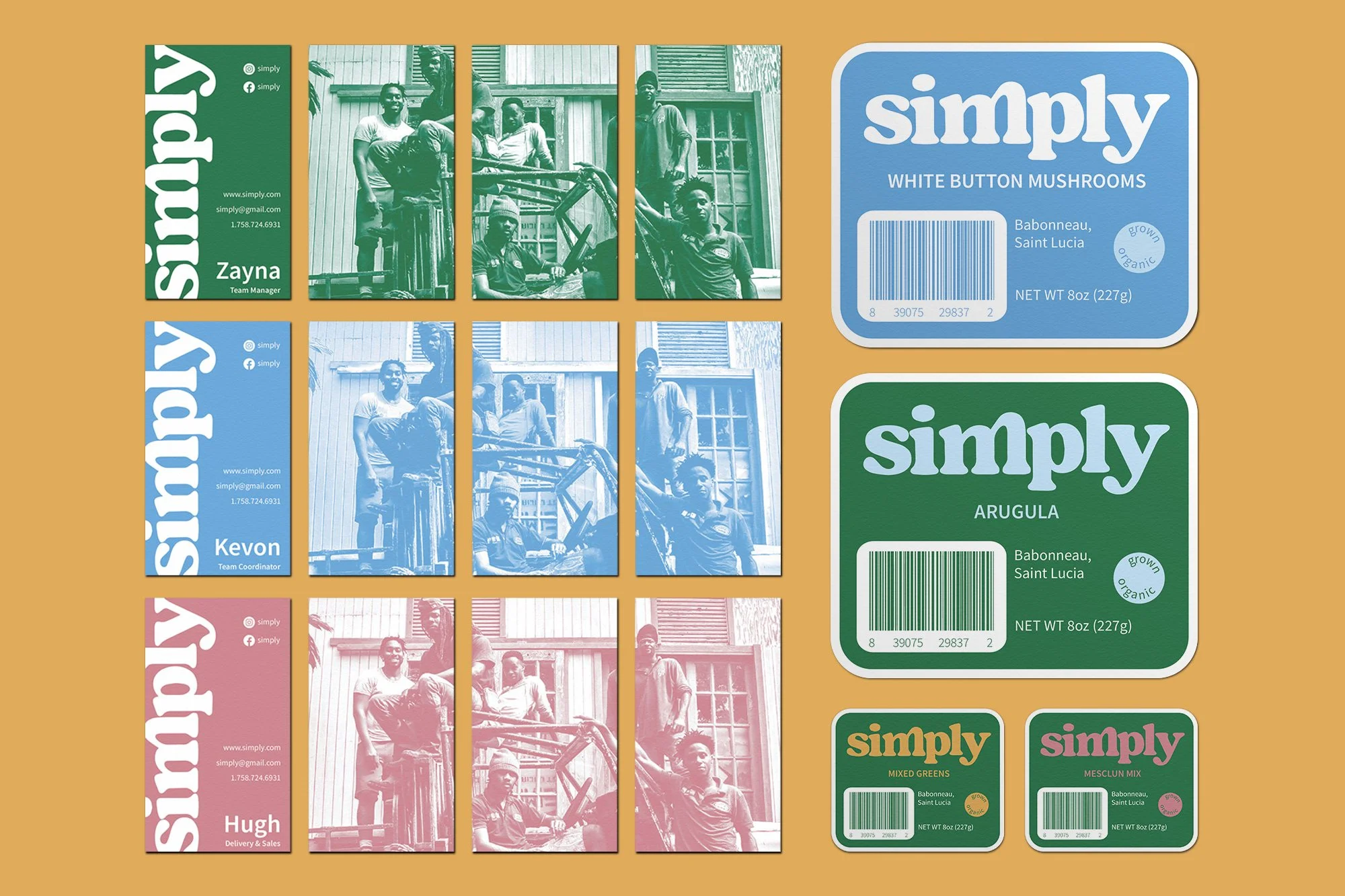 Packaging and Business cards were made in alignment with Simply’s new color palate and business values—making farming cool.